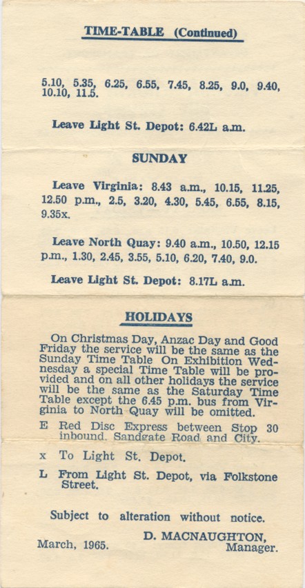 Virginia - North Quay Bus Service Timetable Genre: souvenirHeadwords: VirginiaYear Created: 1965Contributor: John Young Read more about Virginia - North Quay Bus Service Timetable