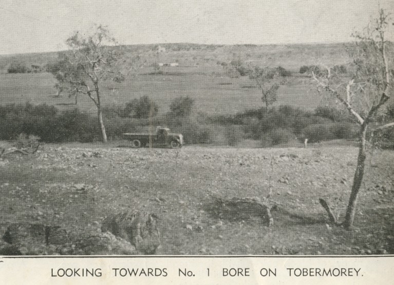 Looking towards No 1 bore, Tobermorey Station, Urandangie Genre: newspaperHeadwords: Barkly TablelandYear Created: 1939Contributor: John YoungPublication Title: The North Queensland Register Read more about Looking towards No 1 bore, Tobermorey Station, Urandangie