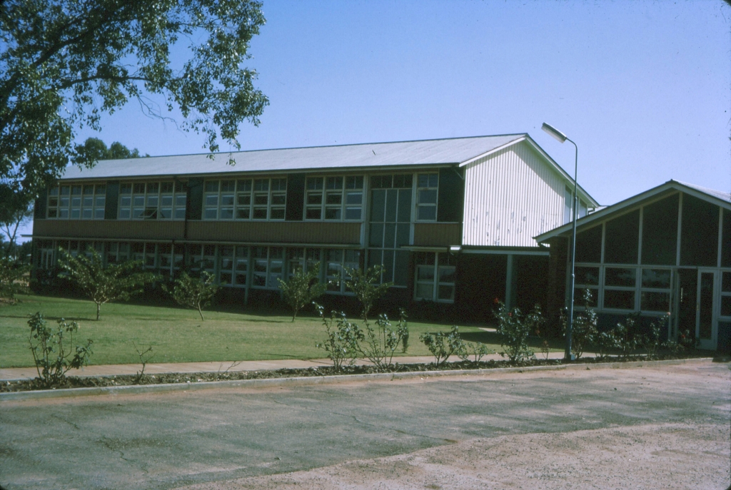 Entrance and G block, high school, Charleville Genre: slideHeadwords: CharlevilleYear Created: 1964Contributor: Lynne Cain Read more about Entrance and G block, high school, Charleville