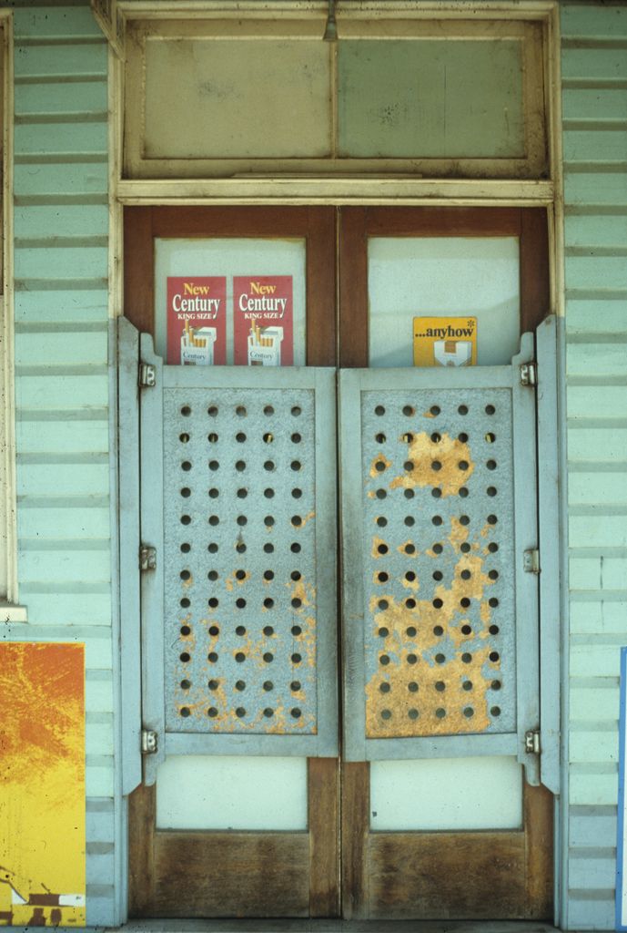 Entry doors of the Grand Hotel, Clermont Genre: slideHeadwords: Clermont and CopperfieldYear Created: 1979Contributor: University of Queensland LibraryPublisher: Michael Keniger Read more about Entry doors of the Grand Hotel, Clermont