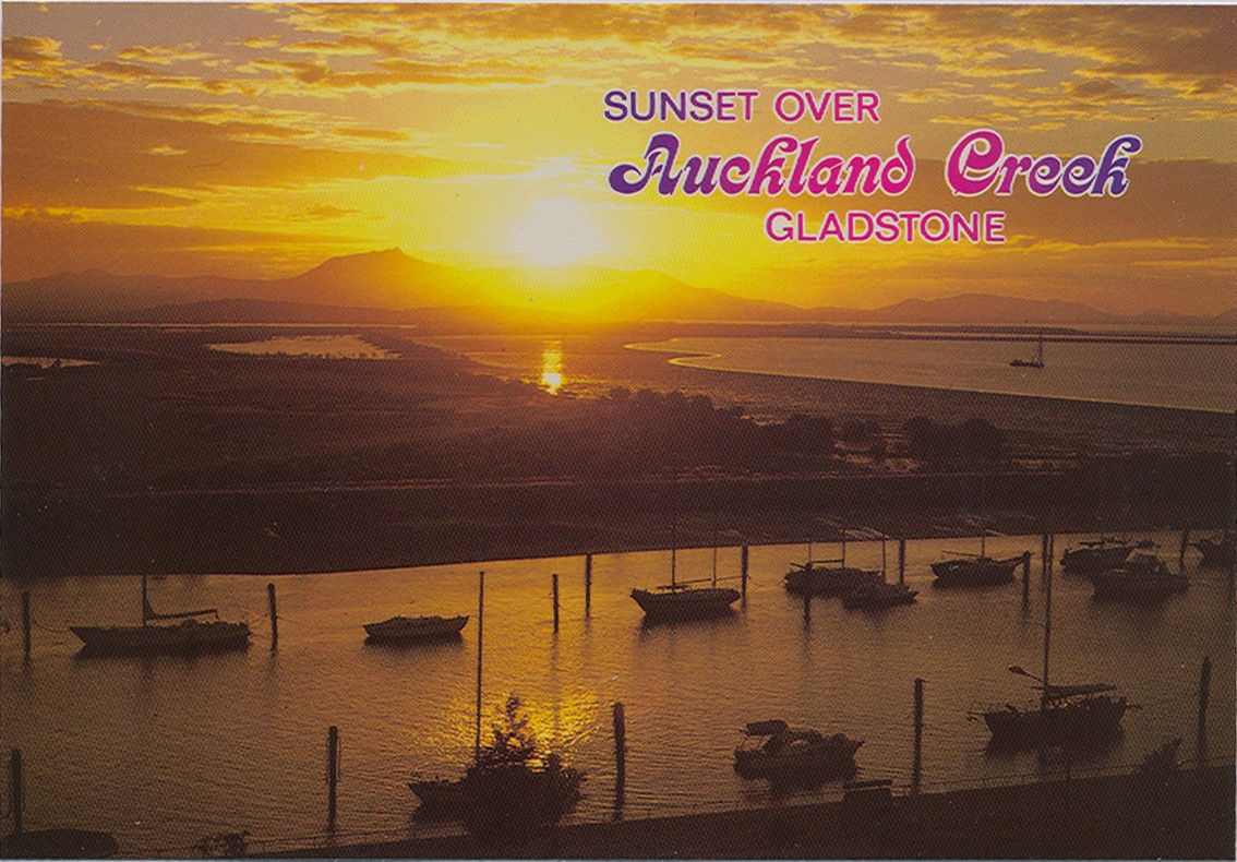 Sunset over Auckland Creek showing Mt Larcom in the distance, Gladstone Genre: postcardHeadwords: Gladstone SuburbsYear Created: c1970-2000Contributor: Murray Views Collection Read more about Sunset over Auckland Creek showing Mt Larcom in the distance, Gladstone