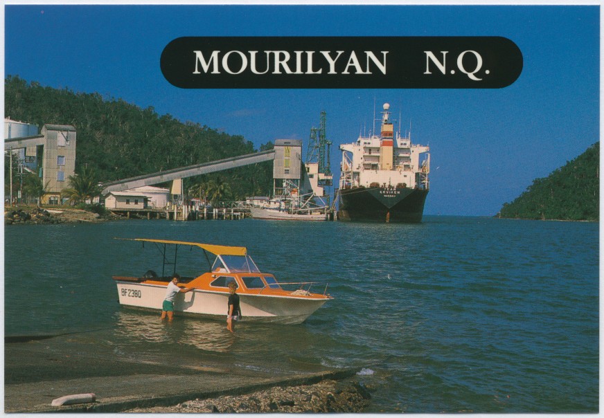 Mourilyan, a rural town, is 10 km south of Innisfail and 90 km south-east of Cairns. It was named by Captain John Moresby in 1872 after one of his officers, Lieutenant Mourilyan. Moresby charted Mourilyan Harbour, 9 km east of the town, when journeying in HMS Basilisk on a coastal patrol.