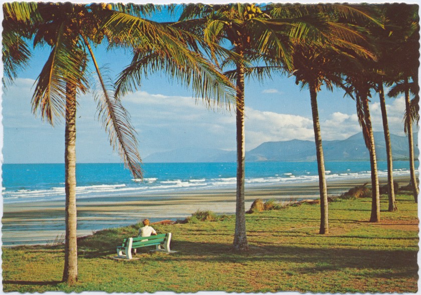 Looking south through the coconut palms at dusk on Four Mile Beach, Port Douglas Genre: postcardHeadwords: Port DouglasYear Created: c1970-2000Contributor: Murray Views Collection Read more about Looking south through the coconut palms at dusk on Four Mile Beach, Port Douglas