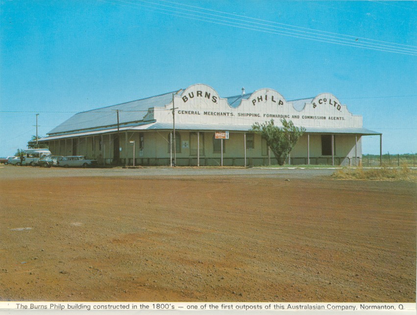 The Burns Philp building constructed in the 1800s, Normanton Genre: postcard folderHeadwords: NormantonYear Created: c1983Contributor: Centre for the Government of QueenslandPublisher: Murray Views Pty Ltd Read more about The Burns Philp building constructed in the 1800s, Normanton
