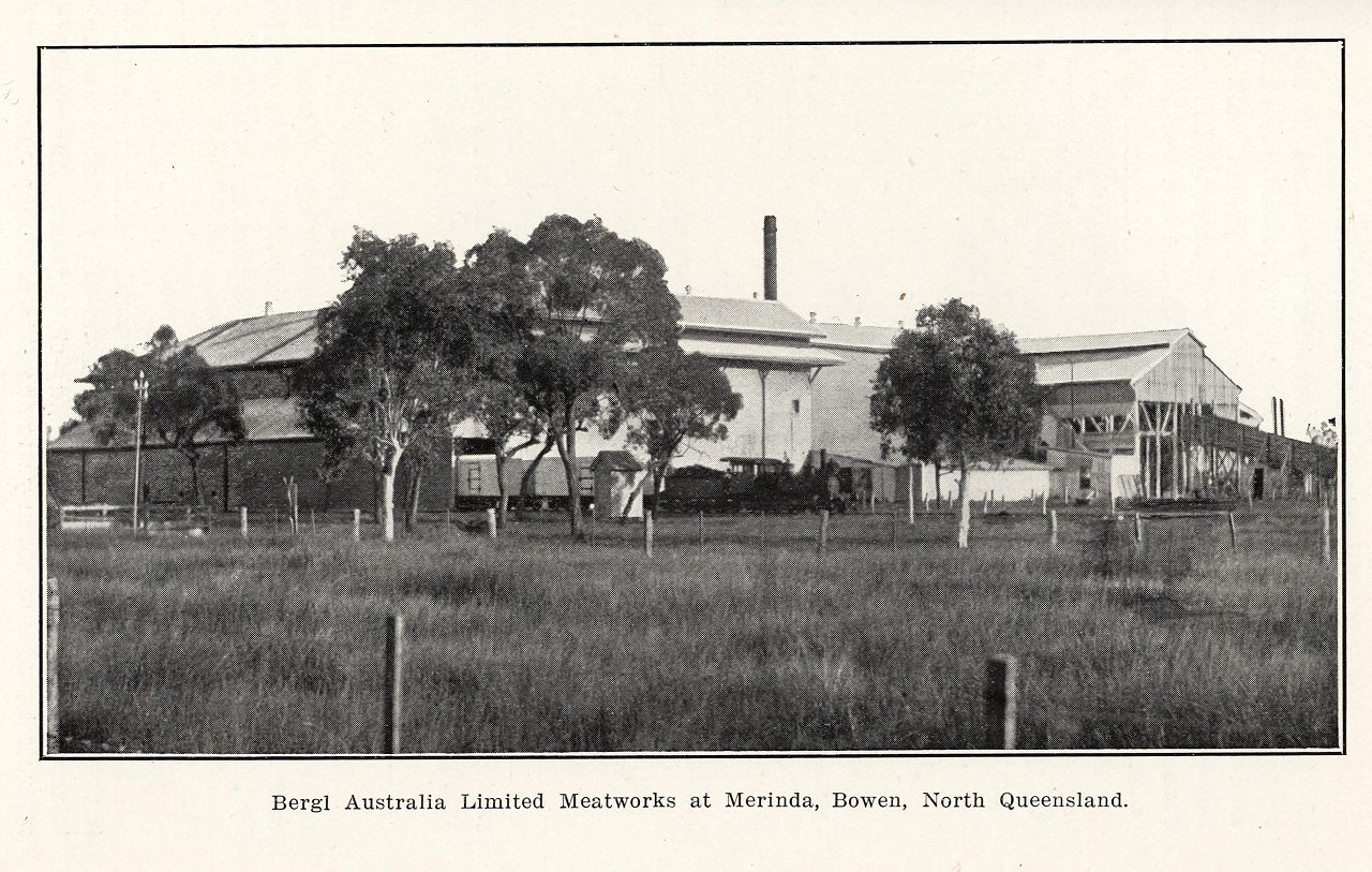Bergl Australia Limited Meatworks at Merinda Genre: bookHeadwords: Bowen ShireYear Created: 1915Contributor: Fryer Library, UQPublisher: Queensland Government Intelligence and Tourist BureauPublication Title: Whitsunday Passage Queensland Read more about Bergl Australia Limited Meatworks at Merinda