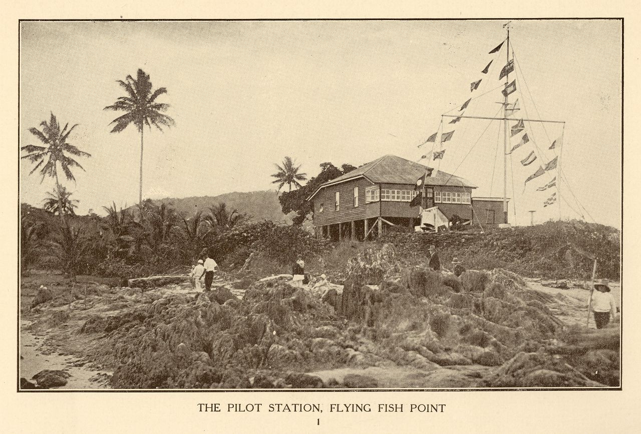 The pilot station Flying Fish Point Genre: bookHeadwords: Flying Fish PointYear Created: 1930Contributor: Fryer Library, UQPublisher: WG RedmondPublication Title: Picturesque Innisfail, North Queensland Read more about The pilot station Flying Fish Point
