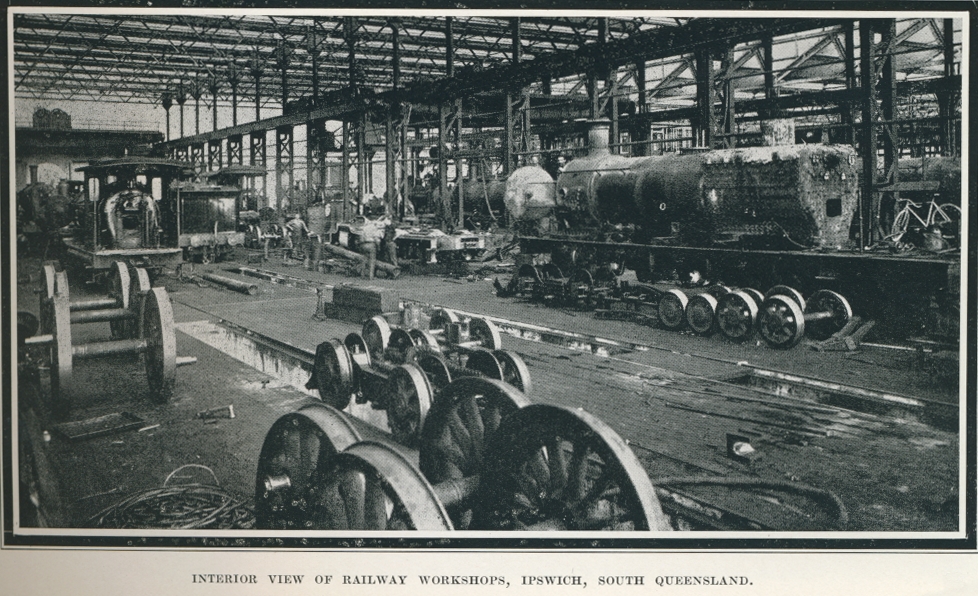 Interior view of railway workshop, Ipswich Genre: bookHeadwords: IpswichYear Created: 1914Contributor: Centre for the Government of QueenslandCreator: Queensland Government Intelligence and Tourist BureauPublication Title: Glimpses of Sunny Queensland (3rd edition)Publication Place: BrisbaneTaxonomy upgrade extras: Applethorpe Read more about Interior view of railway workshop, Ipswich