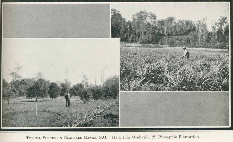 Typical scenes on Blackall Range, citrus orchard, pineapple plantation Genre: bookHeadwords: MontvilleYear Created: 1914Contributor: Centre for the Government of QueenslandCreator: Queensland Government Intelligence and Tourist BureauPublication Title: Glimpses of Sunny Queensland (3rd edition)Publication Place: BrisbaneTaxonomy upgrade extras: Applethorpe Read more about Typical scenes on Blackall Range, citrus orchard, pineapple plantation