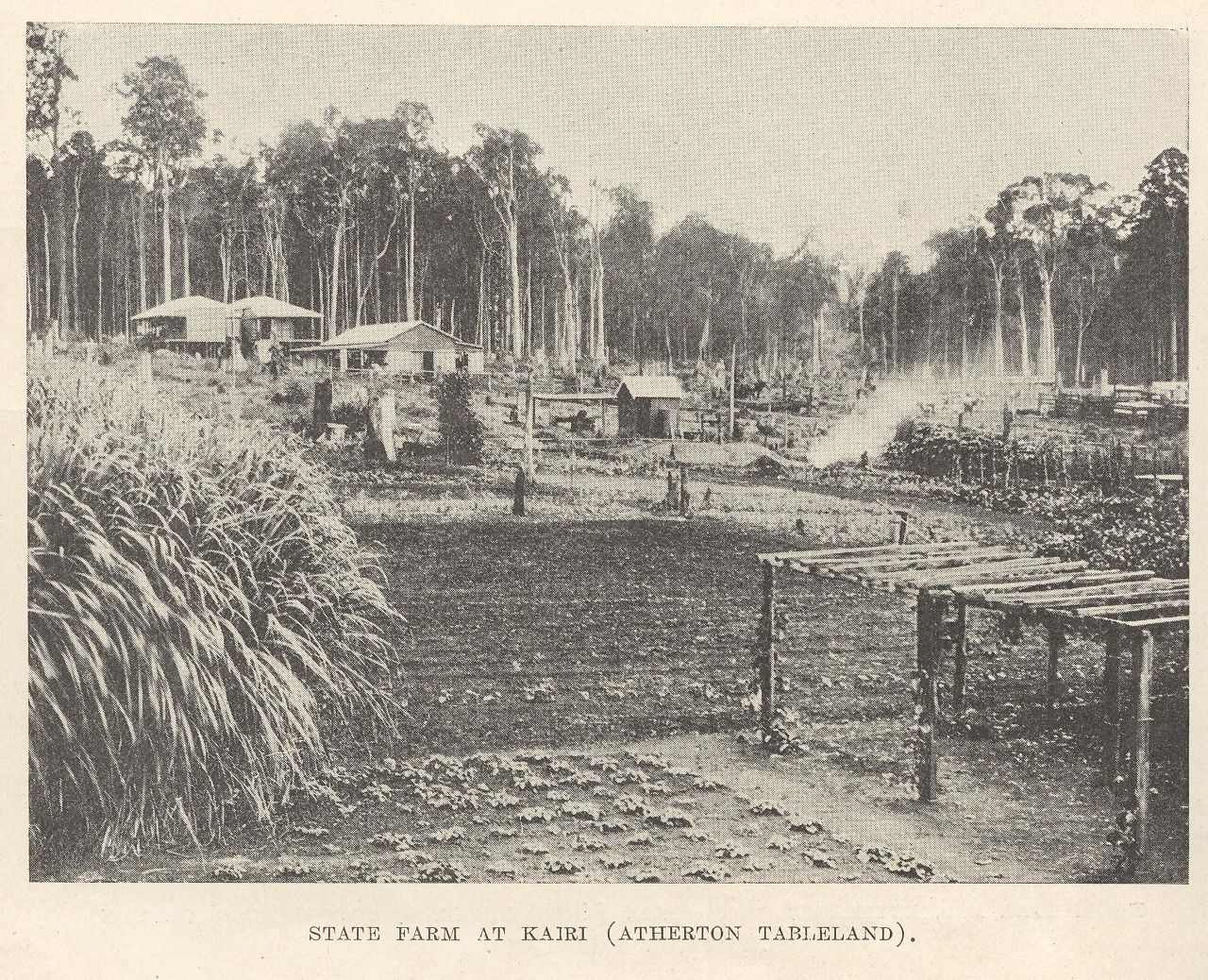 State Farm at Kairi (Atherton Tableland) Genre: bookHeadwords: Atherton Shire and TablelandYear Created: 1918Contributor: Fryer Library, UQPublisher: Queensland Government Intelligence and Tourist BureauPublication Title: Tablelands of North Queensland Read more about State Farm at Kairi (Atherton Tableland)