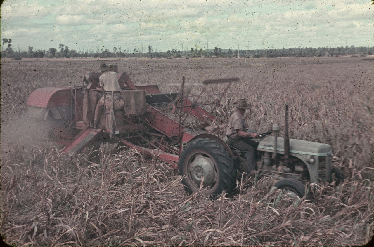Havesting sorghum with drag header, Kingaroy Shire Genre: slideHeadwords: Kingaroy ShireYear Created: c1956Contributor: John Thun Read more about Havesting sorghum with drag header, Kingaroy Shire