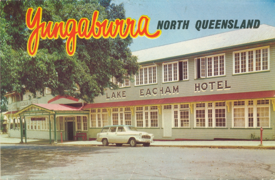 Lake Eacham Hotel, Yungaburra Genre: postcard folderHeadwords: YungaburraYear Created: c1960Contributor: Centre for the Government of QueenslandPublisher: Murray Views Pty Ltd Read more about Lake Eacham Hotel, Yungaburra