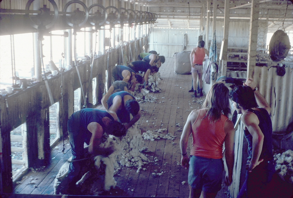 Thylungra shearing shed during the Clip. The Thylungra flock was 16,000 in 1975, Quilpie Shire