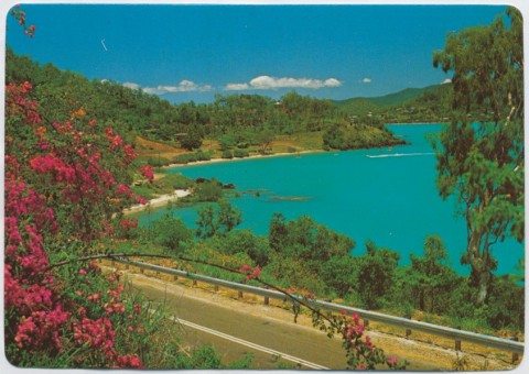 View from Coral Esplanade, Cannonvale, at the time the main road into Airlie Beach giving the first views of the water
