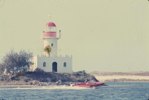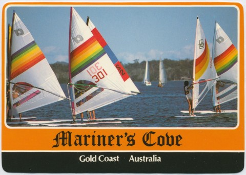 Main Beach, a suburb of the Gold Coast, is located on the eastern side of the Nerang River estuary (the Broadwater), its name a reference to its role as the principal surf beach in the vicinity of the area's first major town settlement, Southport. Main Beach extends northwards along The Spit, a relatively recent sand formation formed following the creation of a sea entrance at the Jumpinpin Bar in 1890, and which since the 1970s has become the location of the Sea World theme park and two luxury resort hotels.