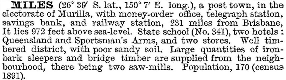 In 1903 Miles, with a population of about 300 people, was described in the Australian handbook: