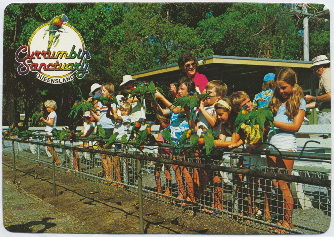 Visitors feed the Rainbow Lorikeets, Currumbin Sanctuary
