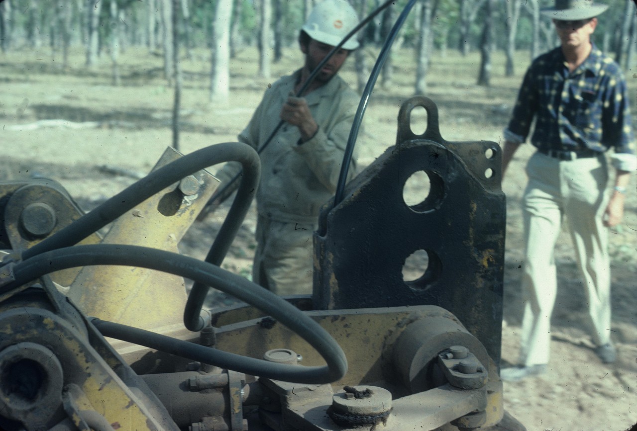 Feeding telecommunication cable into the combined shute/ground-ripper of the plough, Chinchilla Shire